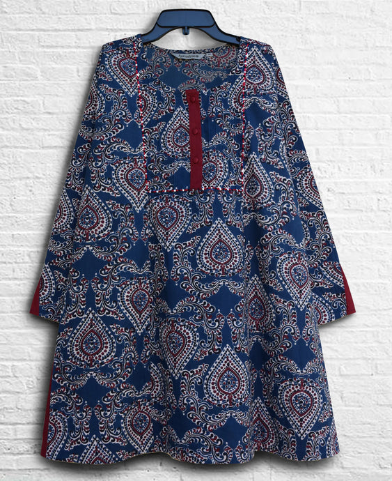 ABHA Block Print Hand Embroidered Embellished Pure Cotton Tunic Top Kurti