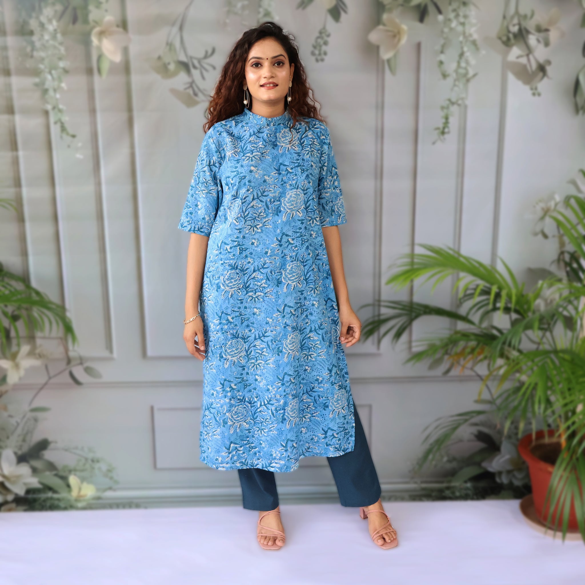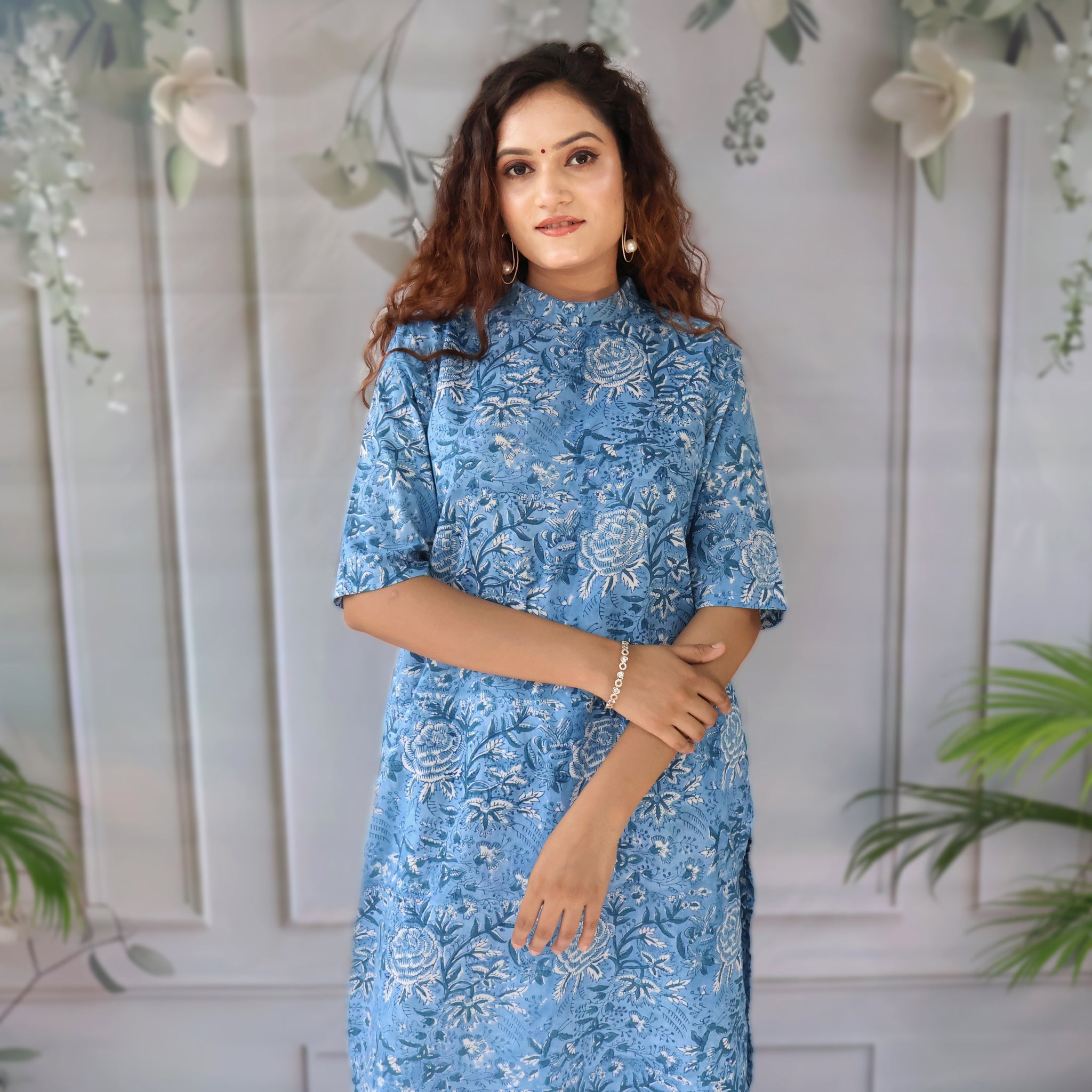 - Round neck with printed Kurta, loop with button