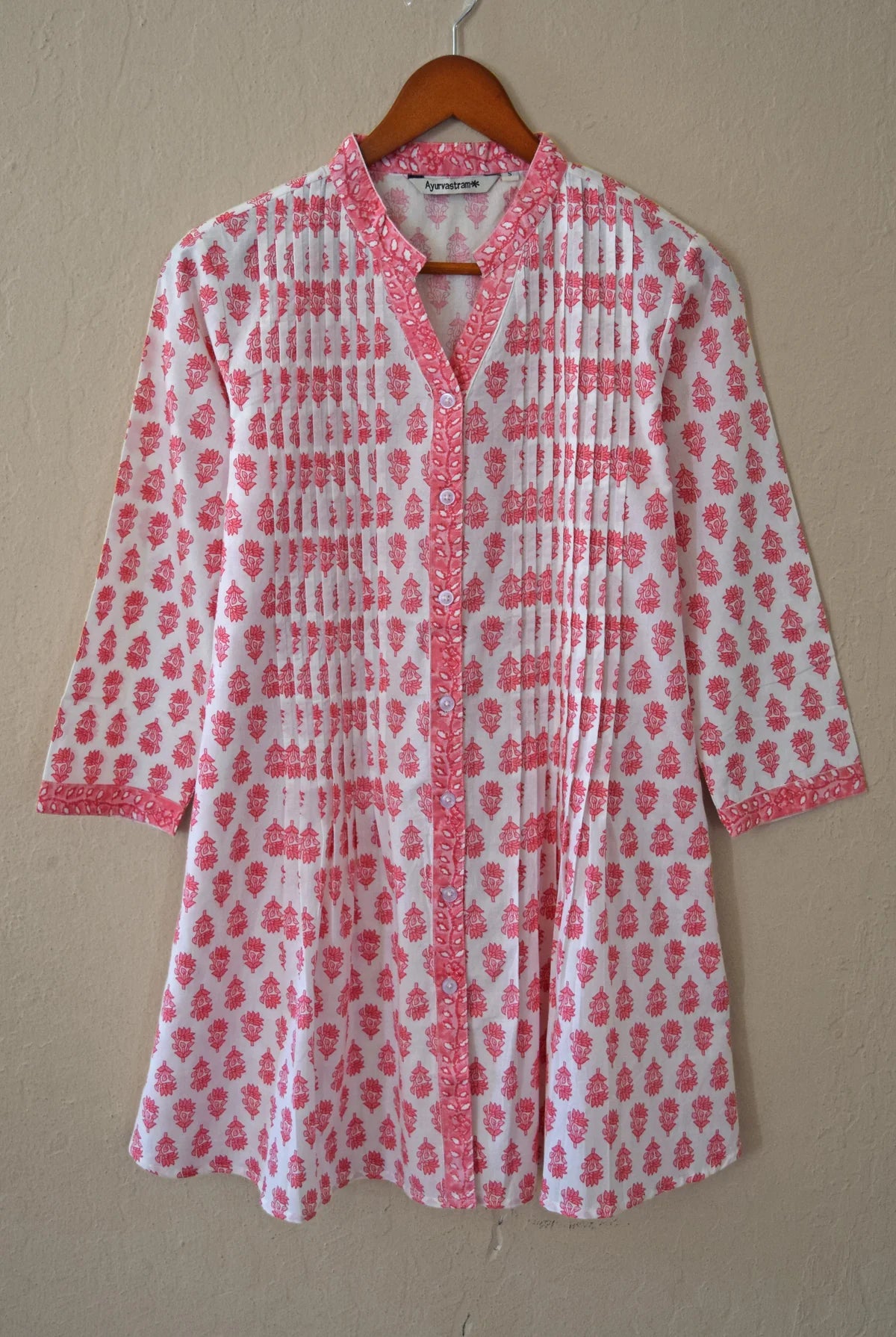 Juno Pure Cotton Block Print Style Front Pleated Tunic
