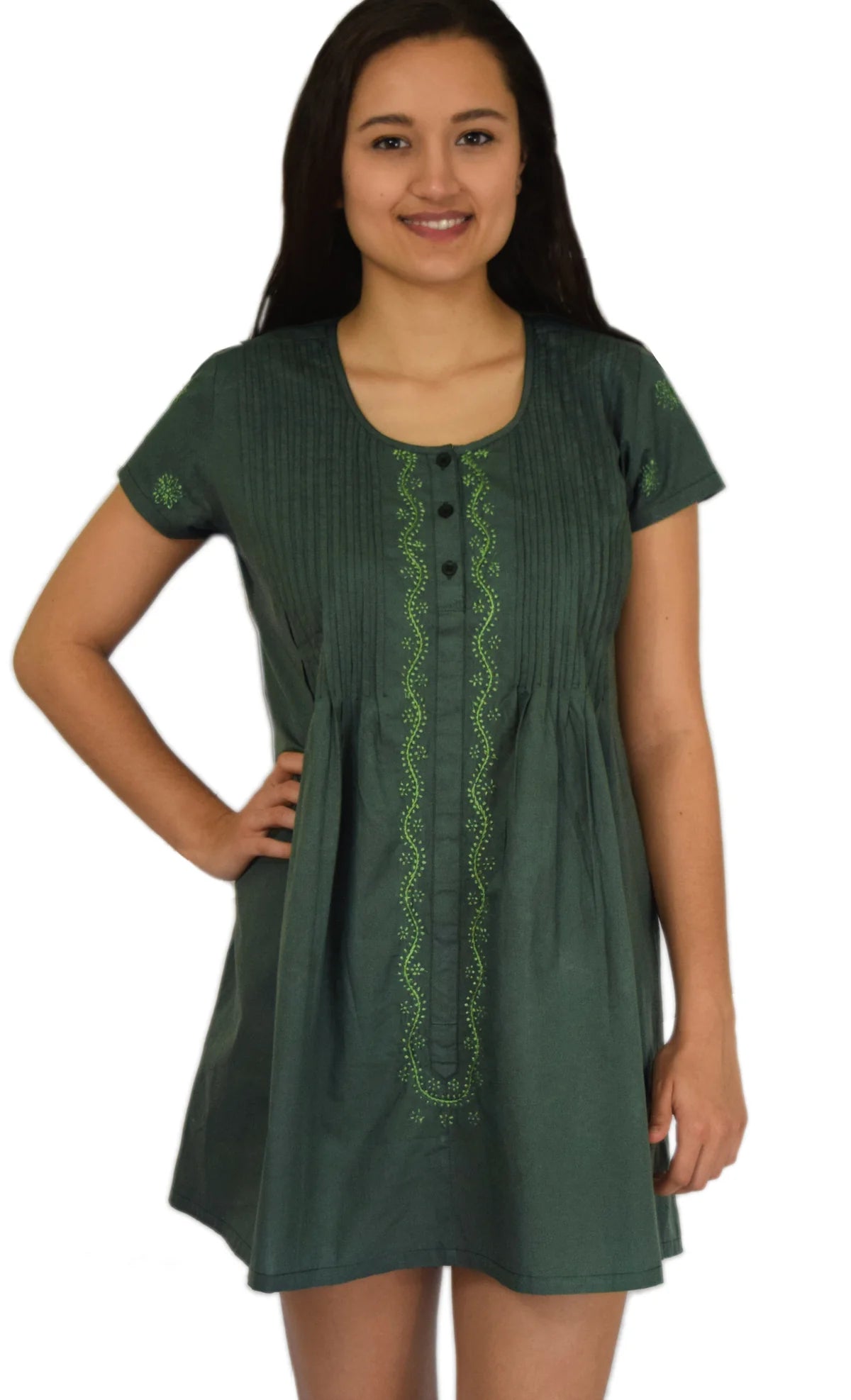 This very lovely hand embroidered pure cotton short sleeve dress, tunic, swim suit cover. This is a comfortable, versatile top, with exquisite and chic hand embroidery. They work great as a dress or tunic, and are lovely as swim suit covers. Wear these with or without belt, for a very modern, chic look!.....