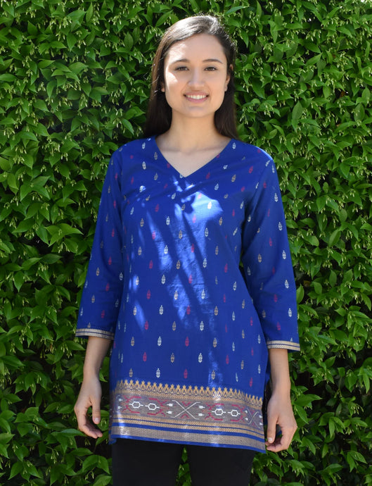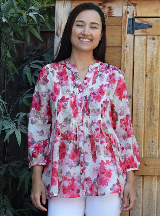 Juno Pure Cotton Block Print Style Front Pleated Tunic